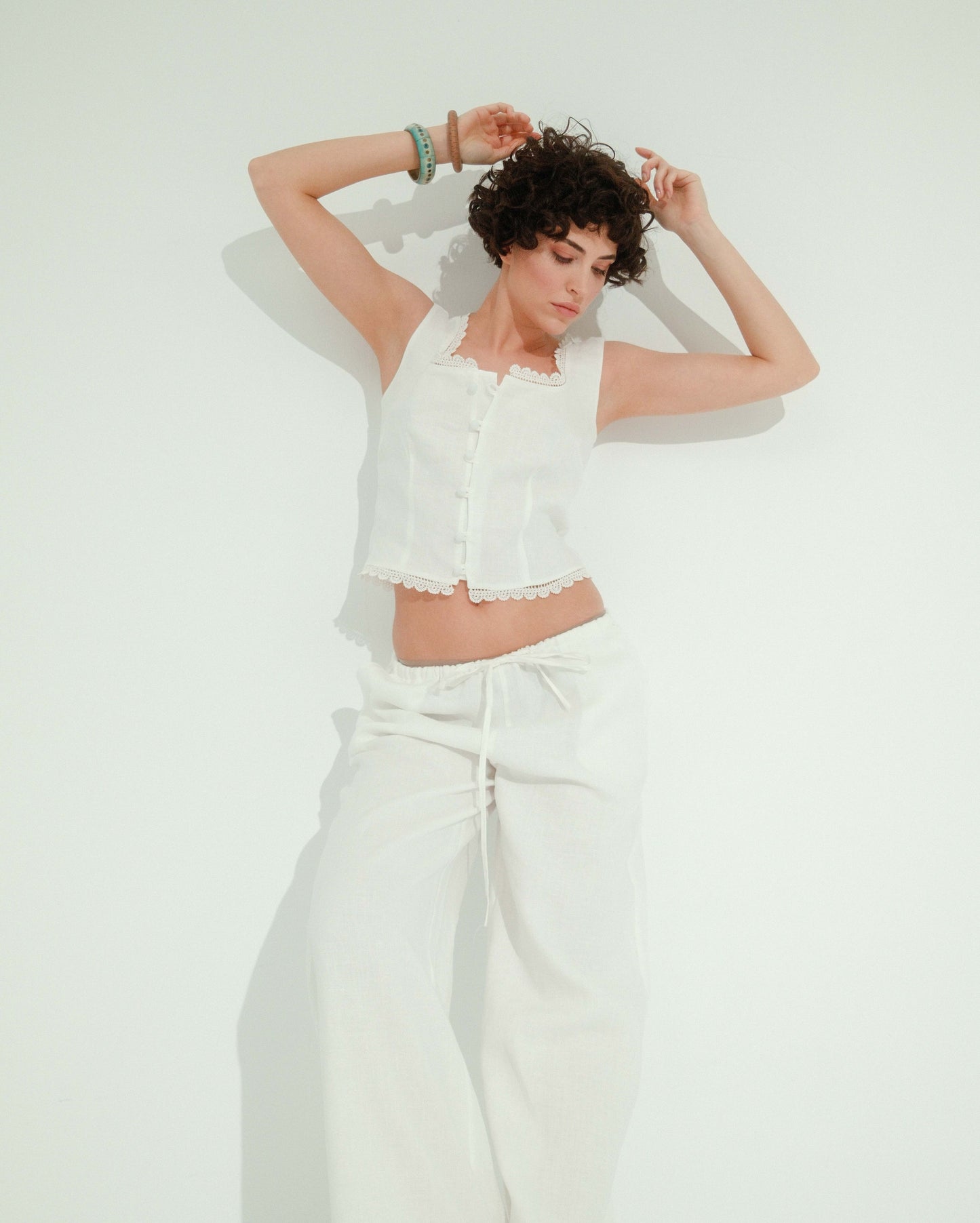 Her bir parça; nefes alan ham kumaşların doğallığını, sade kesimlerin duruluğunu ve el nakışlarının taşıdığı özel dokunuşları bir araya getiriyor. Bu tasarımlar, modern bir kadının gardırobunda zamanın ötesinde yer alacak şekilde tasarlandı—sessiz, güçlü ve yalın.